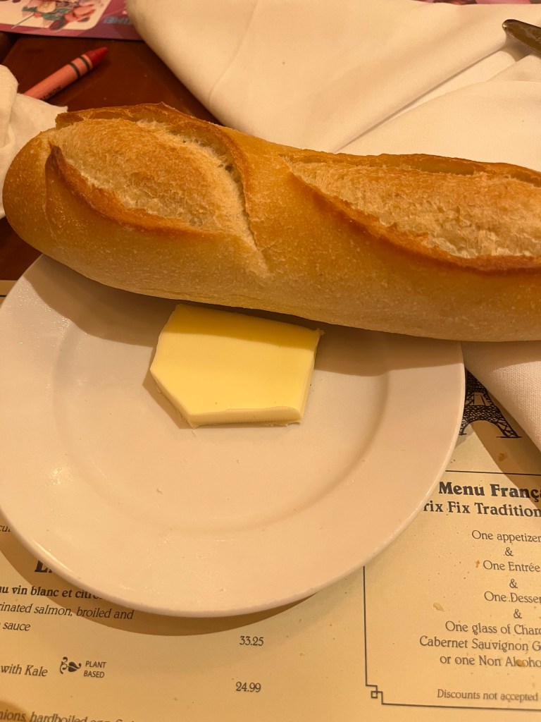 Recently, I was talking with a repeat Disney client who has eaten here three times. He said once it was a disappointment, but twice it was superb. I don’t think I dined here on a superb night. So consistency could be an issue. Also worth noting, “les cellier” literally means “the cellar” so this place is kind of in a cellar. It is a bit underground, so the cell service and wifi were spotty. If you’re hoping to snag a Lightning Lane or move something in your Disney app, you may not have much success here. For being on the higher end of the dining scale price-wise, I’m not sure I’d do this one again.