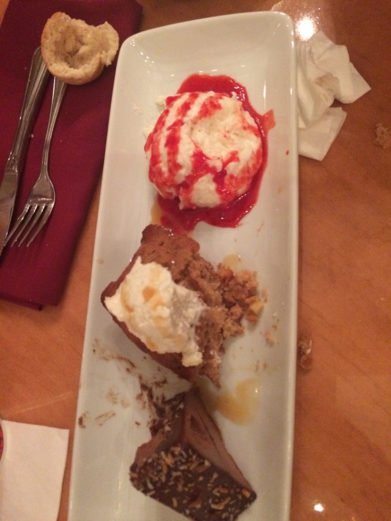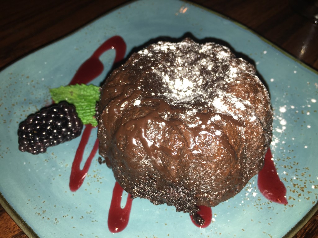 It was SO MUCH FOOD, but…we also shared a dessert! The chocolate lava cake was quite tasty and a nice way to finish the meal while enjoying the fireworks!