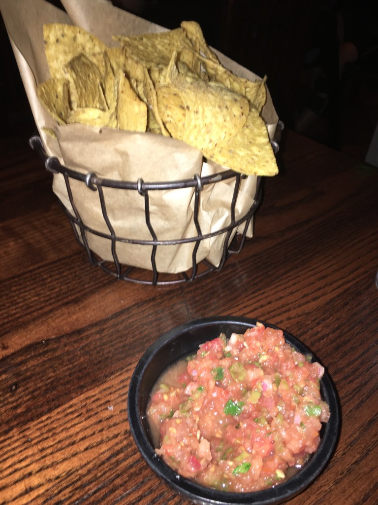 The meal started with tortilla chips and salsa, and of course we added an order of queso because what is Mexican food without cheese dip?!