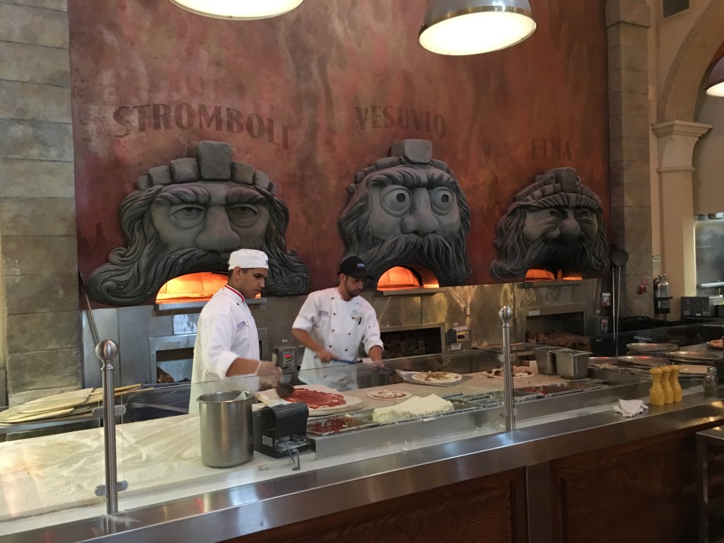 We will end on a high note! Near the back of the Italy pavilion, you will find Via Napoli. Much like Mexican food, Italian food seems like pretty safe family faire, because almost everyone will eat either pizza or pasta. Via Napoli is known for their pizza, particularly since it is cooked in the ovens named after Italian volcanoes!