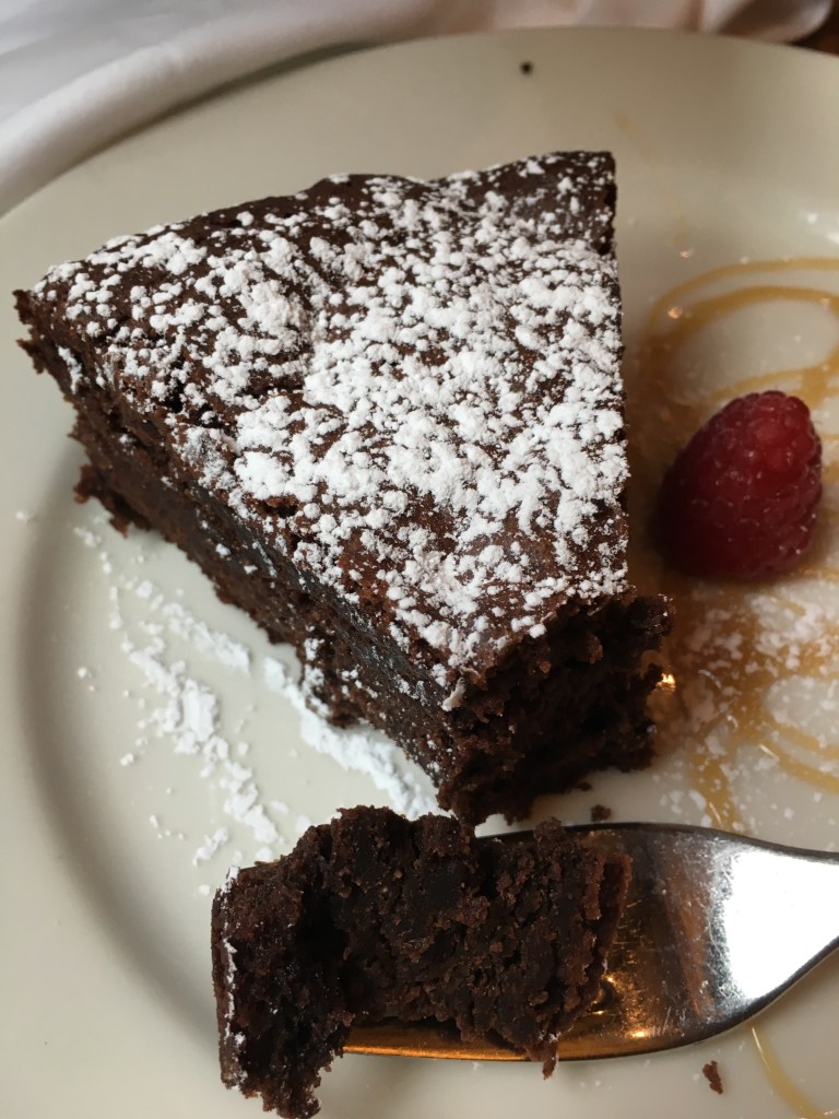 I also ordered a flourless chocolate cake for dessert which was really yummy! I think I took one singular bite of it in the restaurant, packaged it up in a to go box, and ate in in bed in my room later that night!