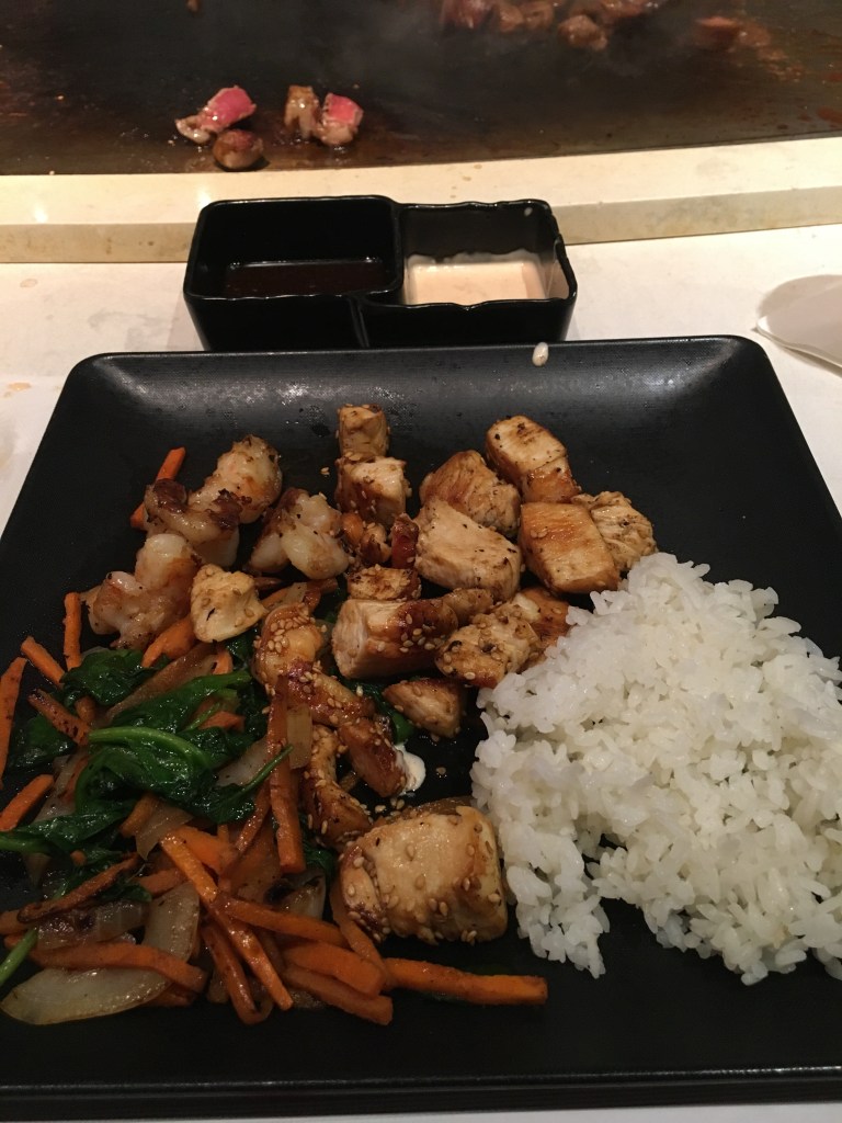 This meal starts with a salad, but unlike most of the experiences I have had at places like Mikata’s or Shoguns, the salad did not have the sweet creamy dressing. Instead it had a darker more vinaigrette dressing that I didn’t like as much, but I am a BIG fan of the normal sweet dressing. The mixed greens were fresh and quite tasty though.