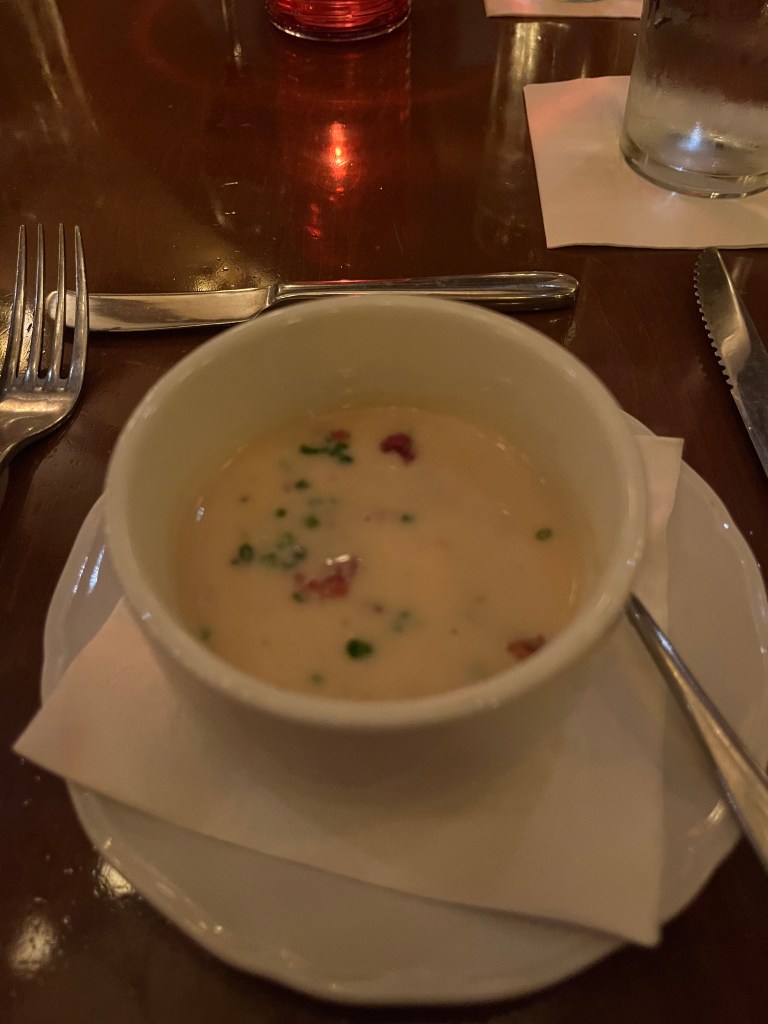 Located in the Canada pavilion, Le Cellier Steakhouse is a signature restaurant with a reputation of being truly excellent. Personally, I was underwhelmed and found that my filet from Les Chefs de France back in 2021 was superior to the filet I had here in February 2024, but I will get to that. The meal starts with bread service and some maple butter which was truly fantastic. I ordered the iconic Cheddar Cheese Soup which was the true highlight of the meal for me.